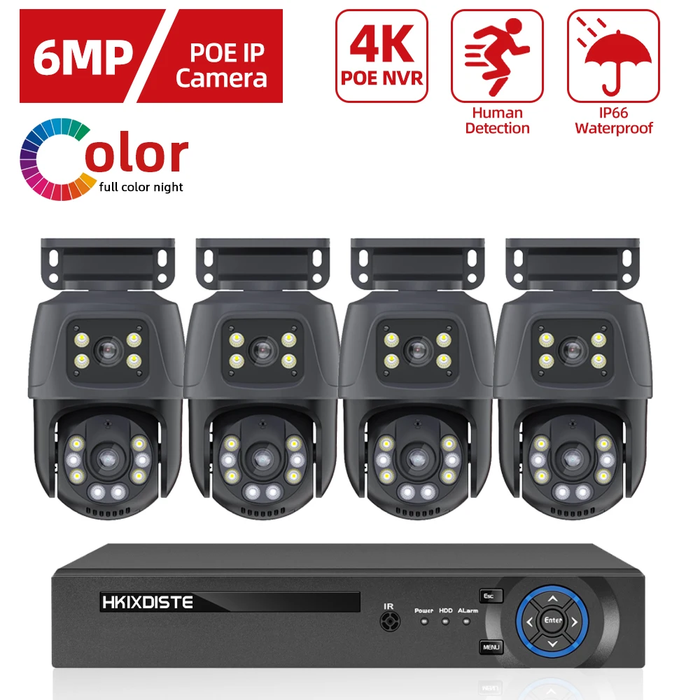 H.265 4CH POE NVR készlet kültéri Vízálló POE Ip camer 6MP Kettős szám objektív PTZ CCTV haza biztonsági Rendszer beállítása XMEYE 10CH