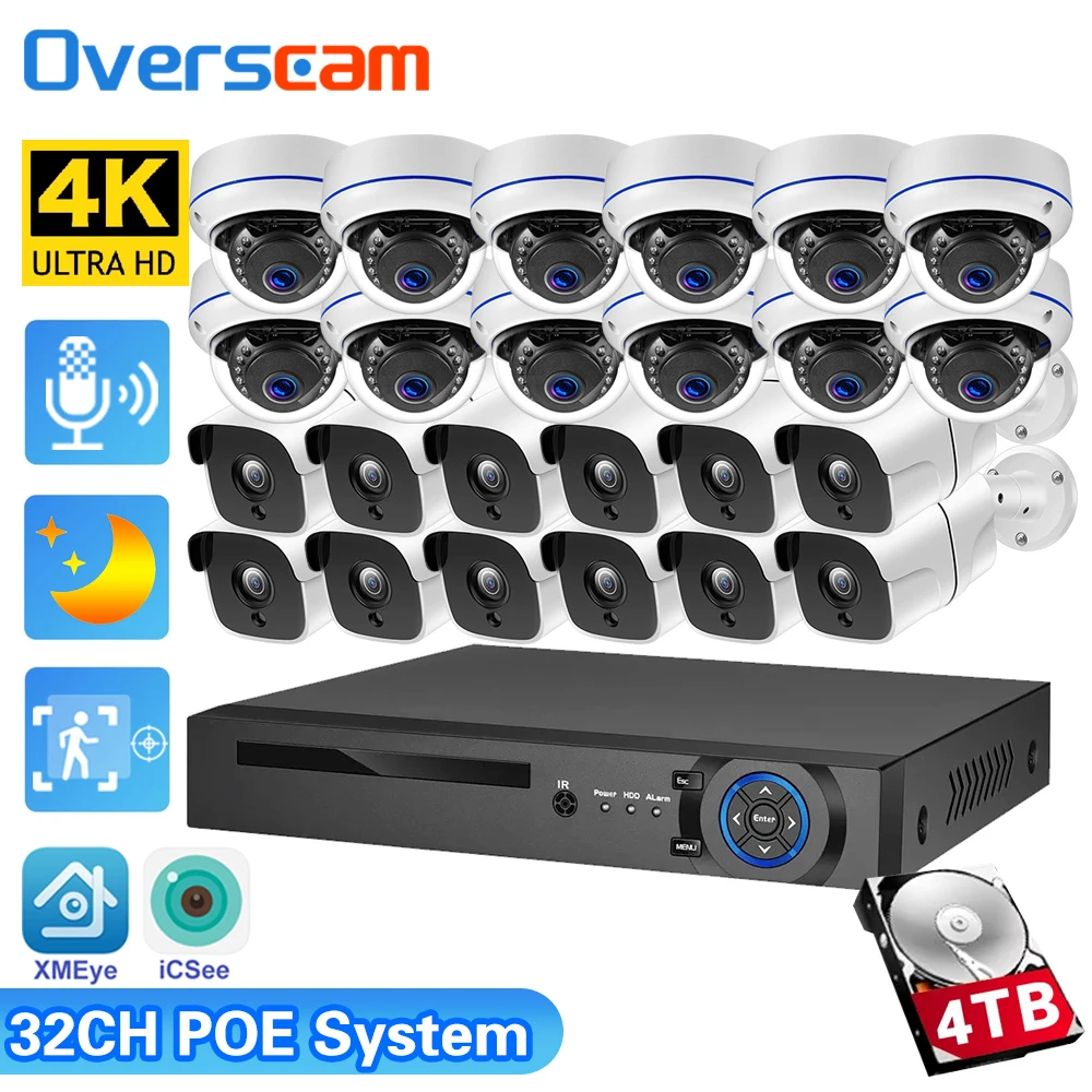 H.265 32CH 4K POE NVR készlet 8MP CCTV biztonsági beltéri kültéri Vízálló Ip camer Hang éjjeli Átélés camer videó Őrzés beállítása