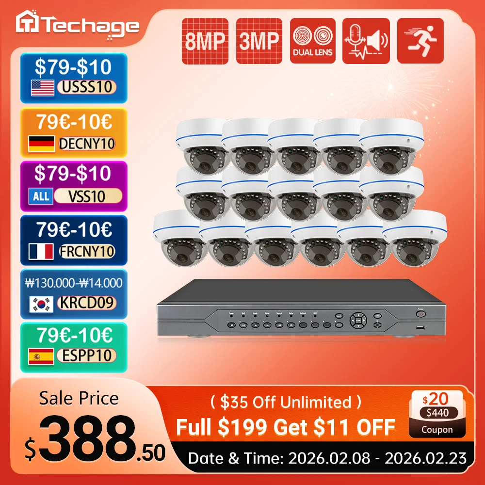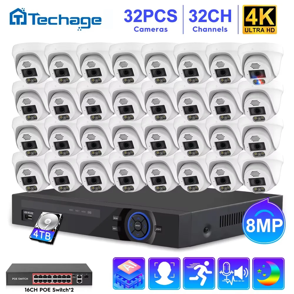 Techage 32CH NVR 4K POE biztonsági camer Rendszer 8MP 5MP AI arca detekci Két Mód Hang CCTV videó Őrzés beállítása XMEYE kits
