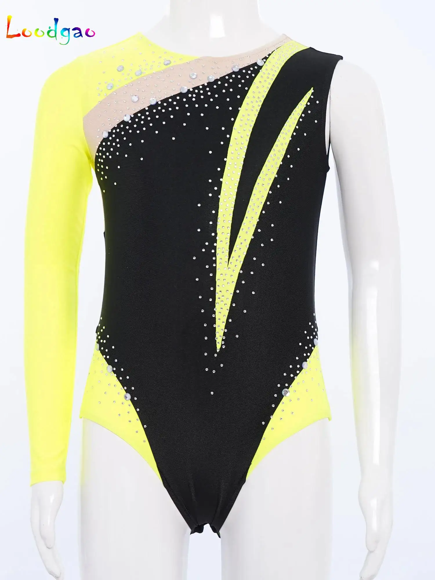 Becő lányok színben Jegyzettömb Gimnasztika kezeslábas stv Ingujj Ragyogó rhinestones bodysuit Hiánytalan Alapanyag Balett-trikó számára Balett Tánc Jóga Korcsolyázás