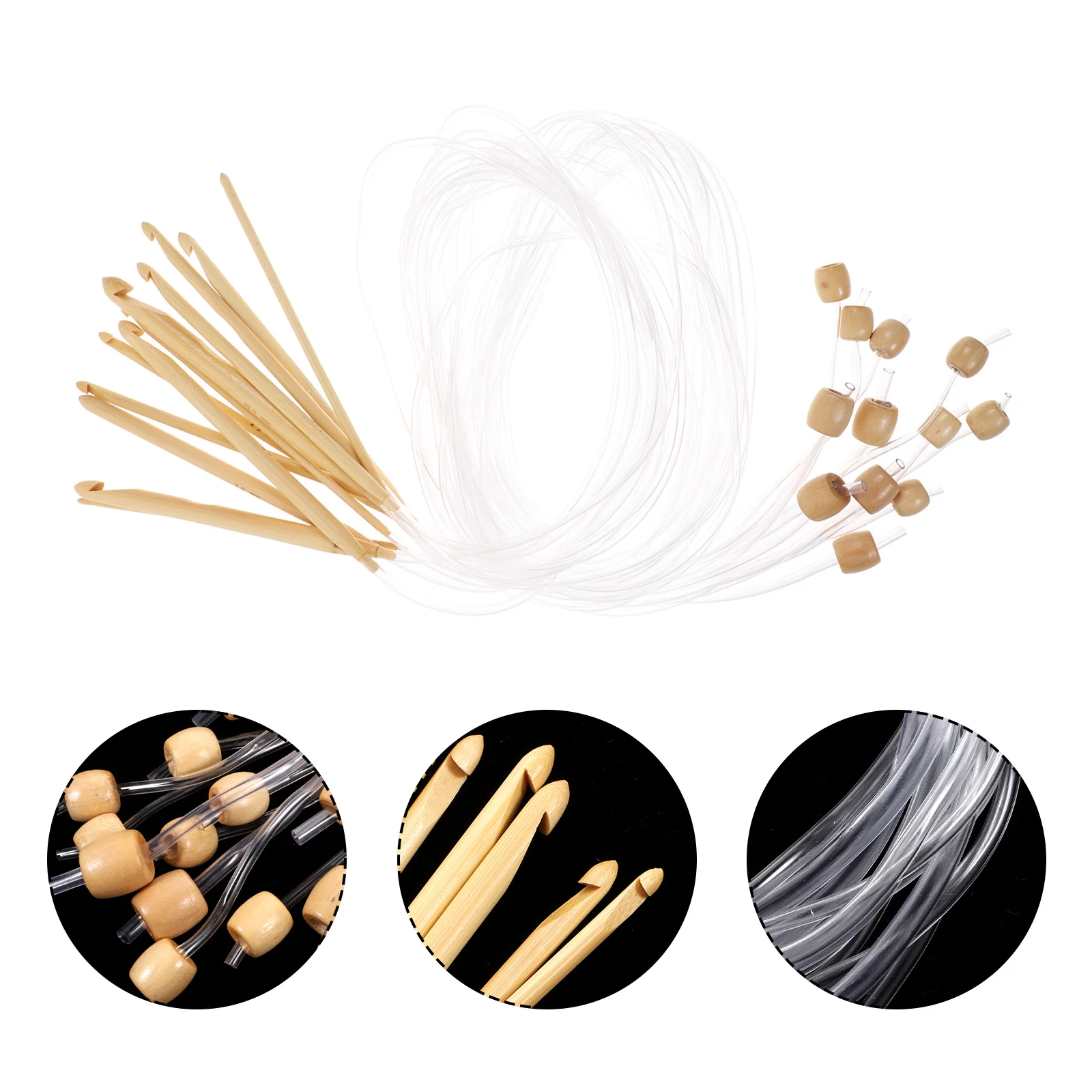 12pcs Horgol Akasztó beállítása 3.0mm kelt 10.0mm Bambusz Horgol tűk tunisian Afgán Szőnyeg Szövés mesterségek Kézműipar Megvarr eszközök