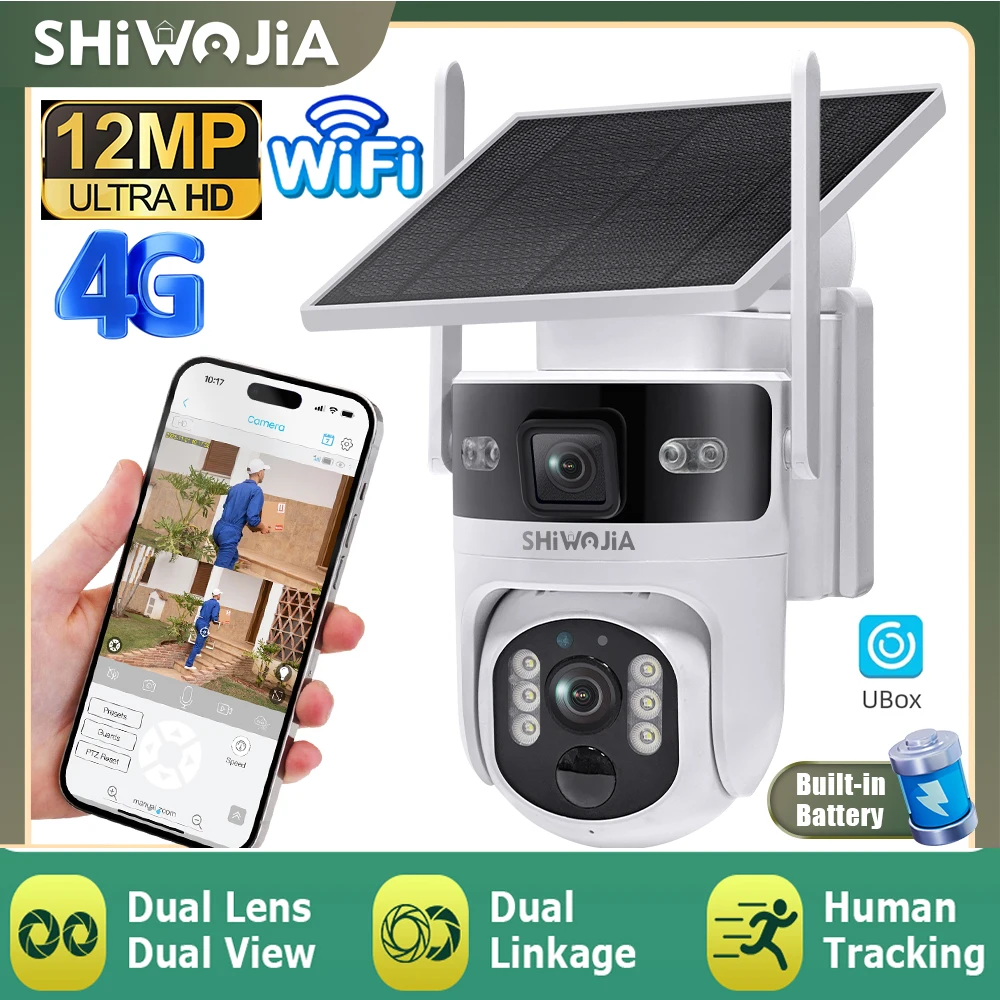 SHIWOJIA 4G LTE napelemes biztonsági Akkumulátor camer 12MP Kettős szám objektív WIFI videó Őrzés PTZ camer PIR detekci kültéri Képellenőrző Ip