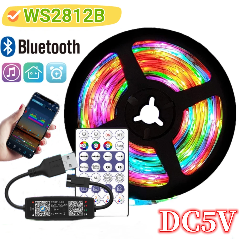 WS2812B RGB ledes csík ligh 5V USB Bluetooth APP Távoli kontroly 5050 Ellágyul Pántlika Lámpa PC Távolbelátás Életszerű szoba Atmoszféra ligh dekor