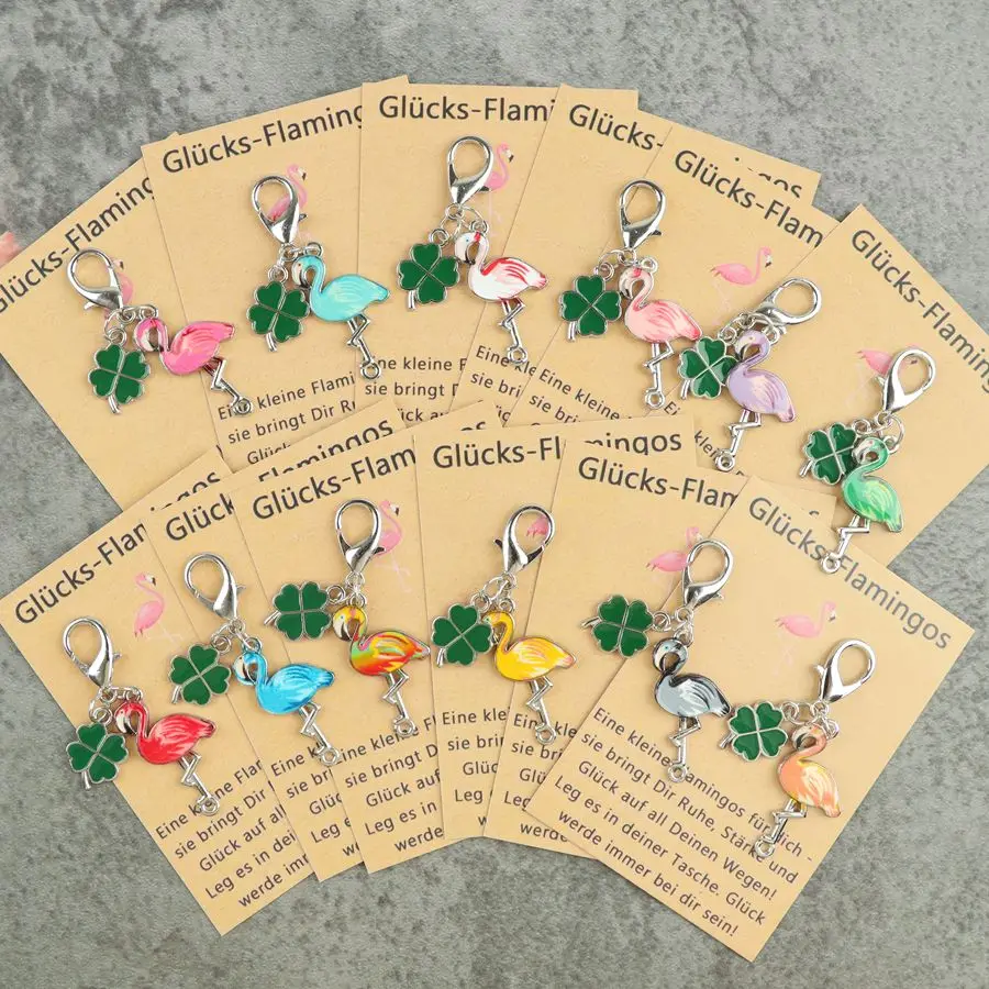 12pcs Bájos Flamingó keychains, komplety vel Késztető Köszönés kártyák, Csinál Befejezi kicsi ajándékok számára Jóbarátok majd Család.