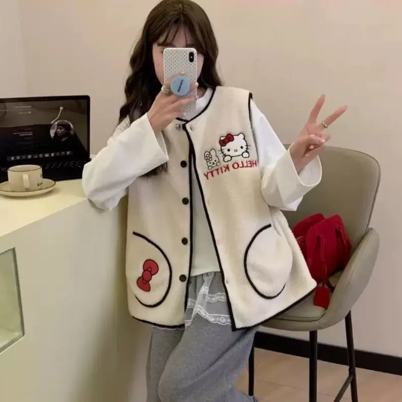 Sanrio Szervusz Barka Poláris polár kabát Gúnyrajz Szervusz Barka embroidered Ingó- Alsóing Alvóhely Esik téli Túlméret outerwear számára Nők