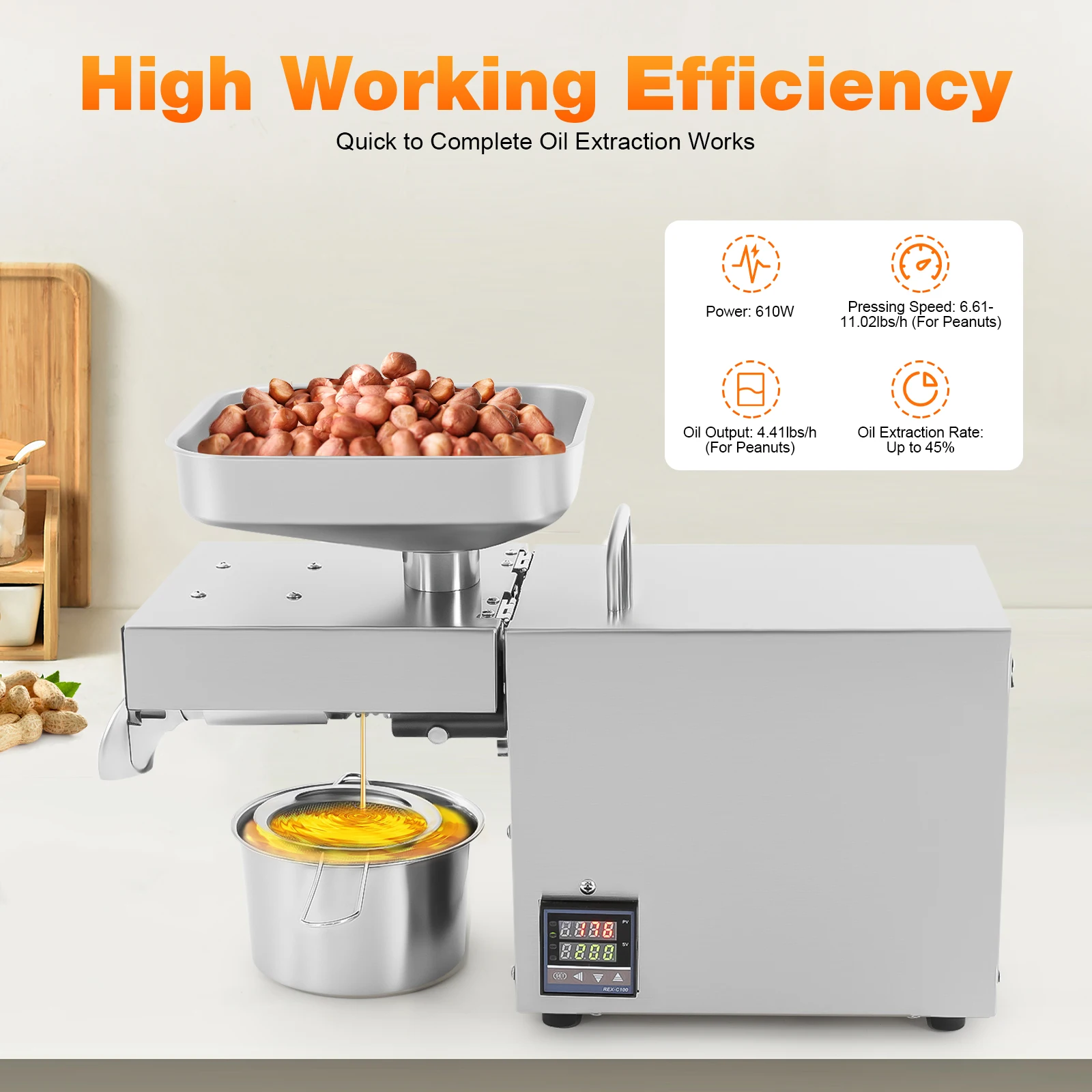 Pressa per olio da 610 W Pressa per olio caldo e freddo in acciaio inossidabile 40-240 ° c Estrattore di olio d'oliva per semi di girasole e noccioli di arachidi