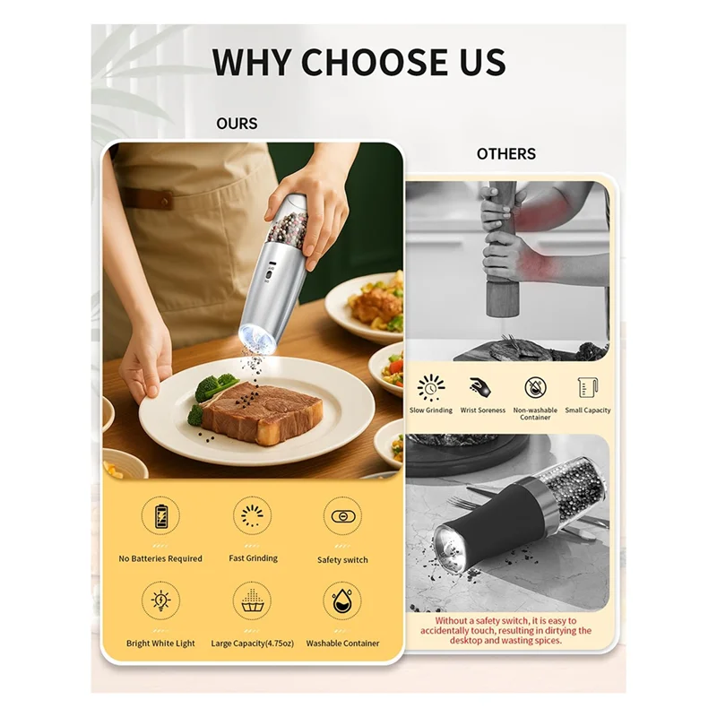 CKRE-Set macina sale e pepe elettrico Set macina sale e pepe ricaricabile Macina sale e pepe elettrici
