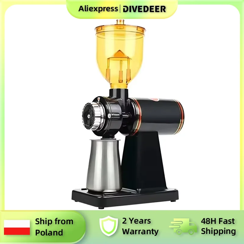 Macinacaffè Elettrico DIVEDEER con Corpo in Acciaio Inox, 8 Impostazioni di Macinatura Regolabili, Macine Piatte per una Macinatura Precisa del Caffè