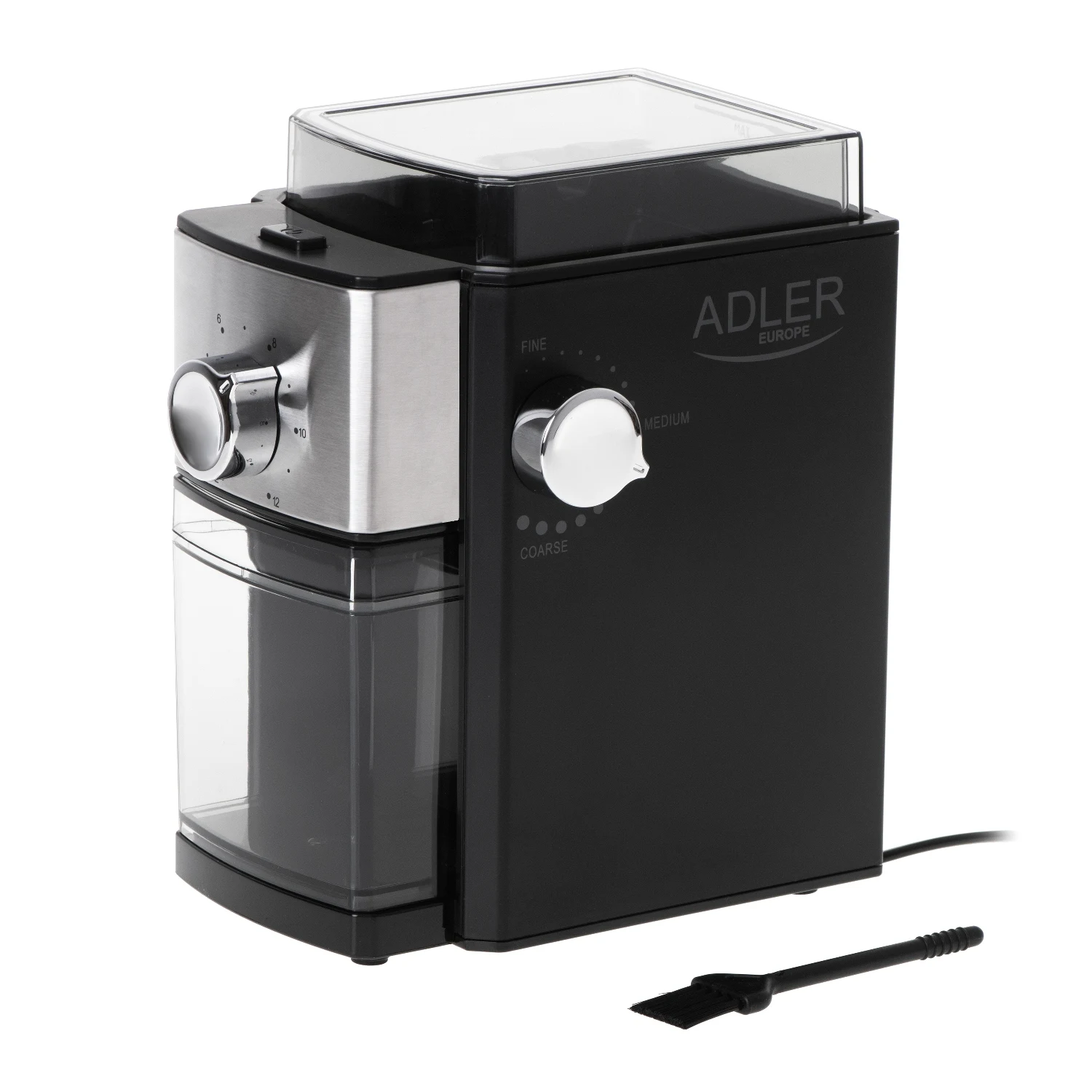 Macinacaffè elettrico incandescente da 300 W, regolazione della macinazione, silenzioso, design compatto, 12 porzioni, sicurezza dell'uso