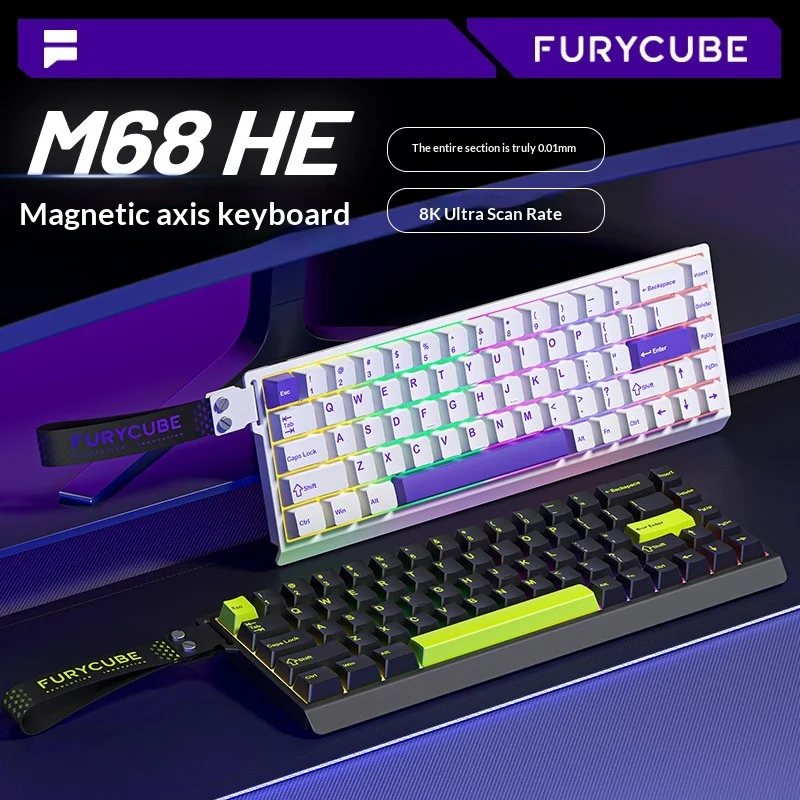 Tastiera ad effetto Hall Furycube M68he Pro con attivazione regolabile con velocità di polling 8k ottimizzata per Valorant