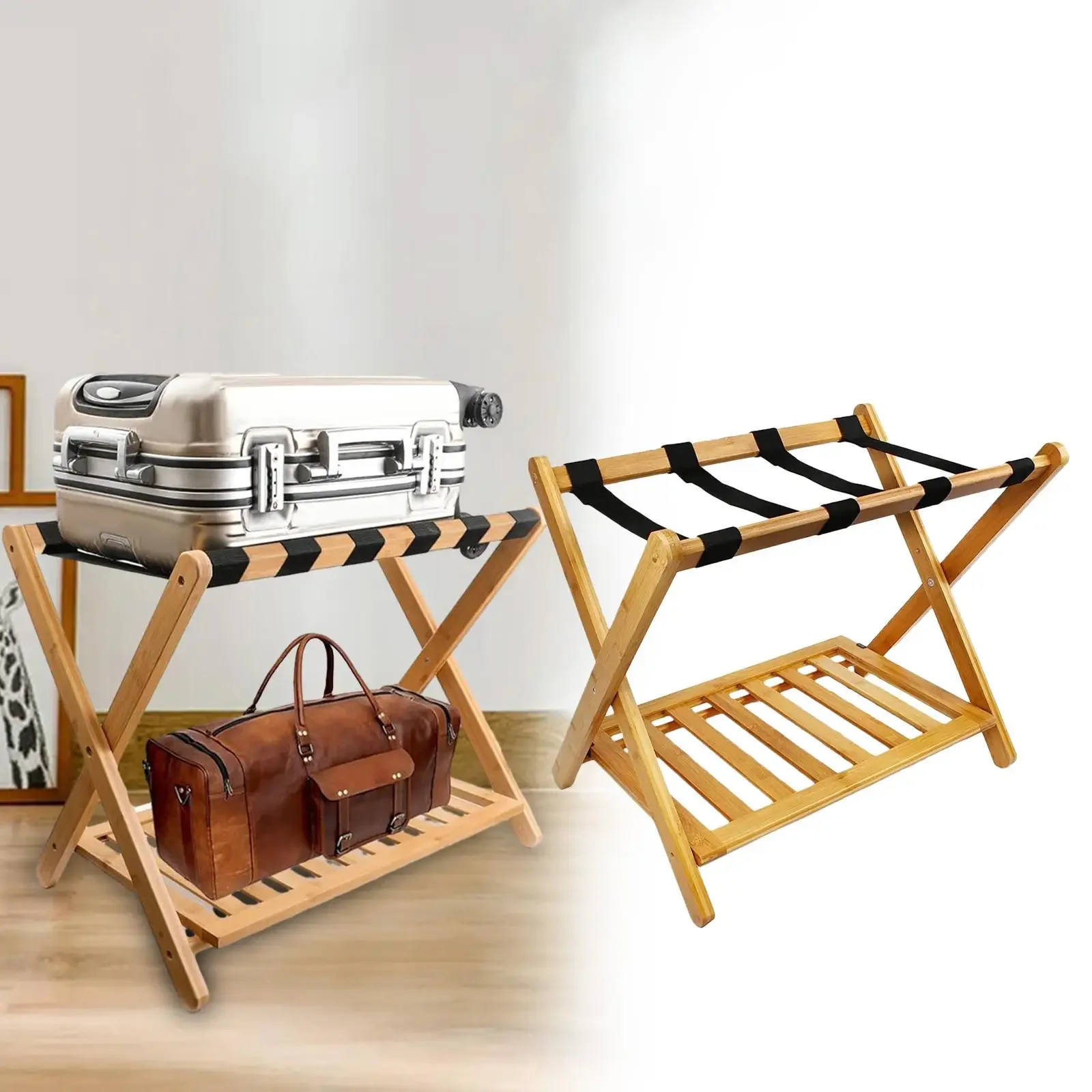 portavaligie Portapacchi, supporto per valigia pieghevole in bambù con ripiano portaoggetti per camera degli ospiti, camera da l