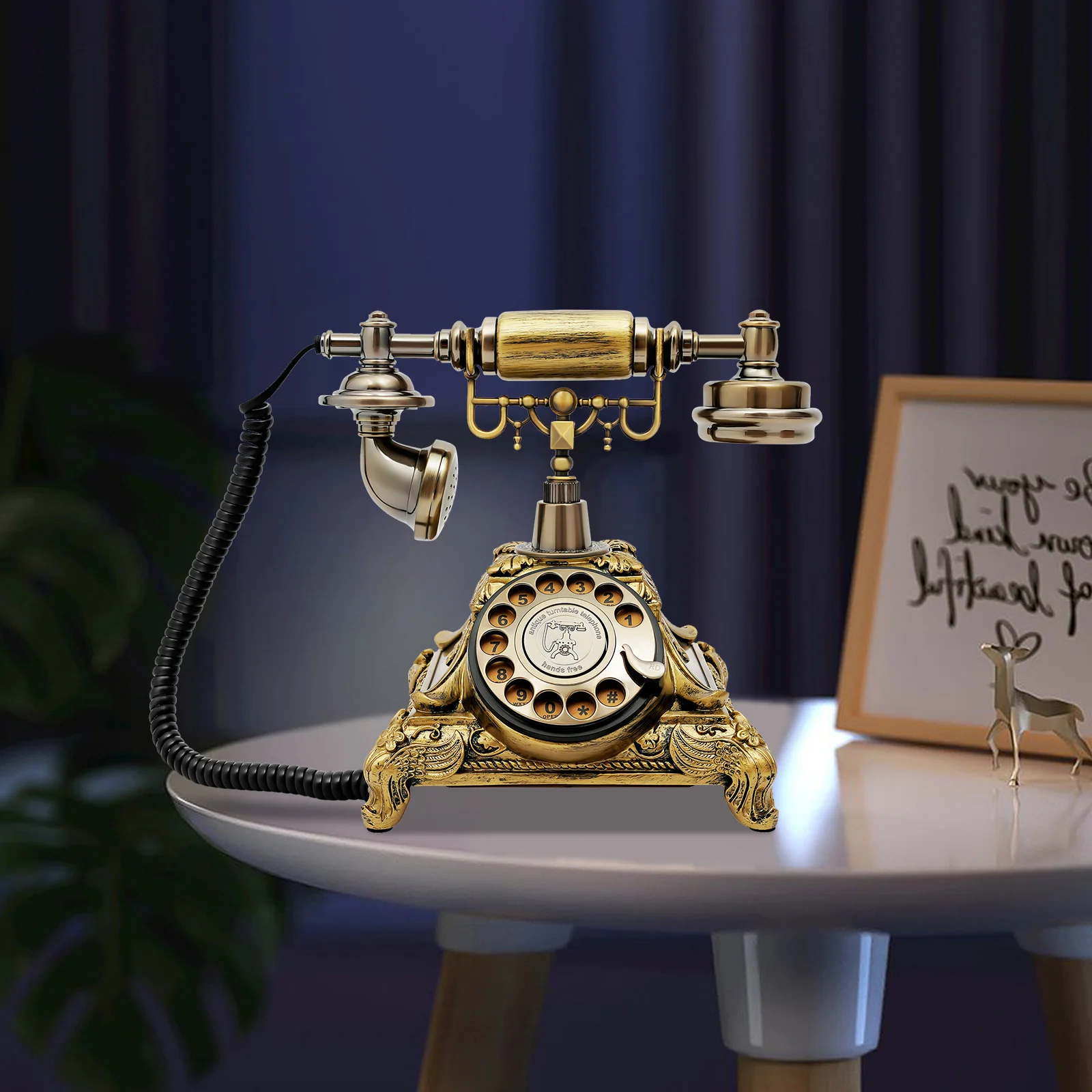 Telefono Vintage in Bronzo con Quadrante Rotante, Classico Telefono Fisso Retrò con Cavo, in Resina e Lega di Zinco, Decorazione per Casa e Ufficio, Telefono Antico