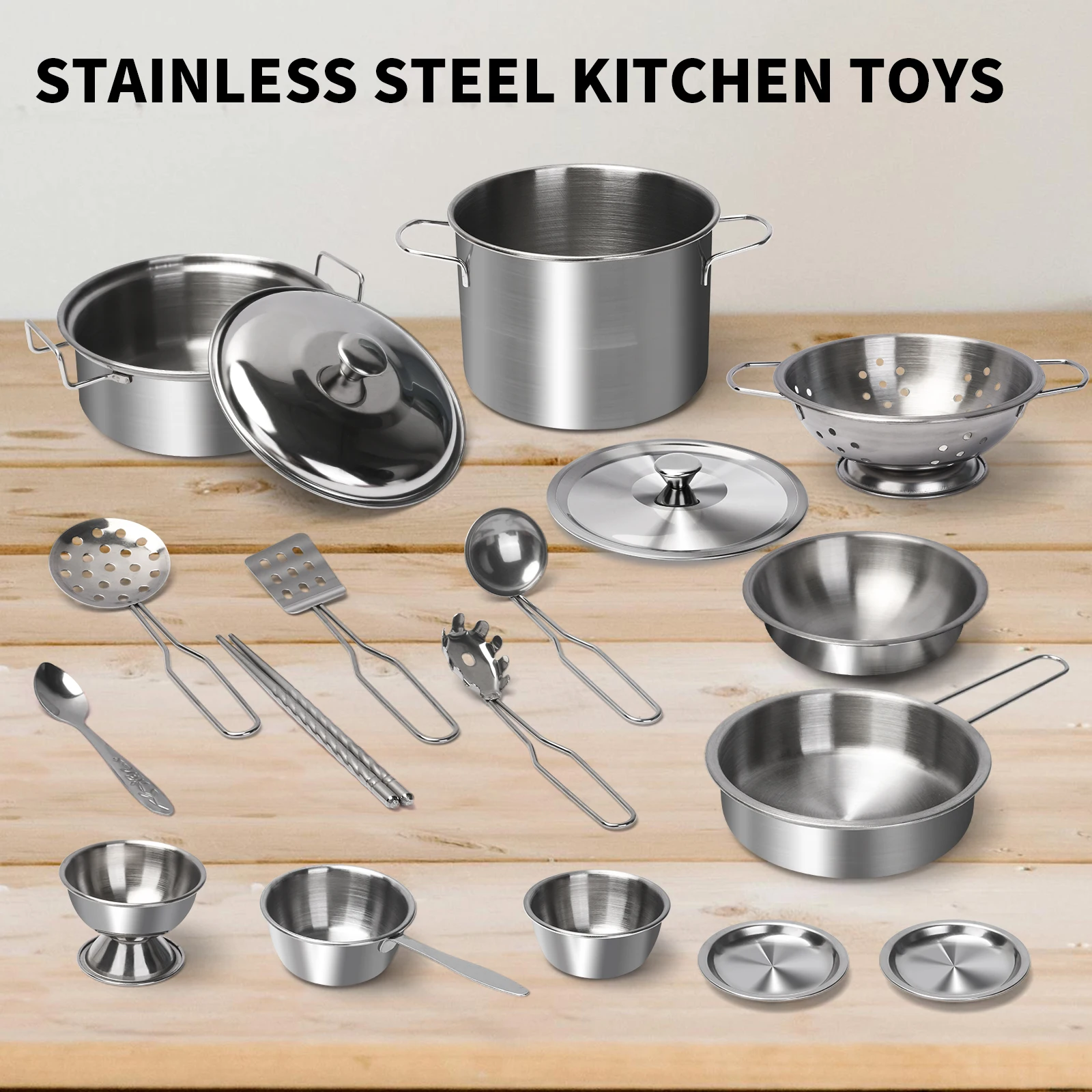 Set di giocattoli da cucina per bambini in acciaio inossidabile con pentole e padelle in vero metallo - Accessori per giochi di imitazione per regalo di compleanno per bambini