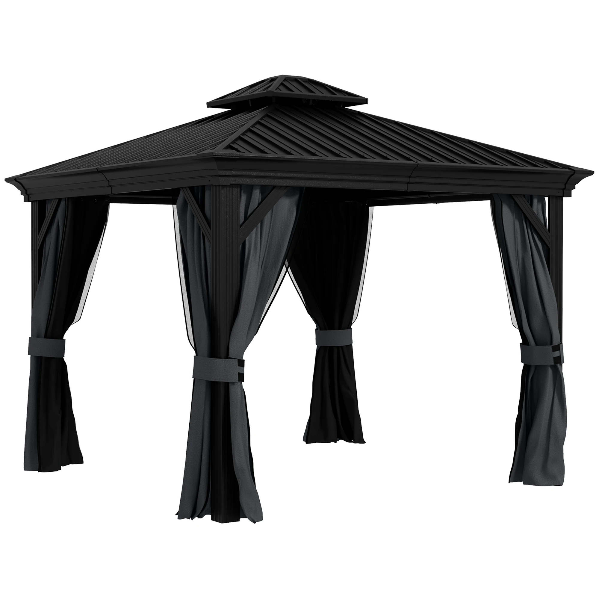 Gazebo in Alluminio con Tetto Rigido 3,65 x 3m, con Accessori - Grigio Scuro
