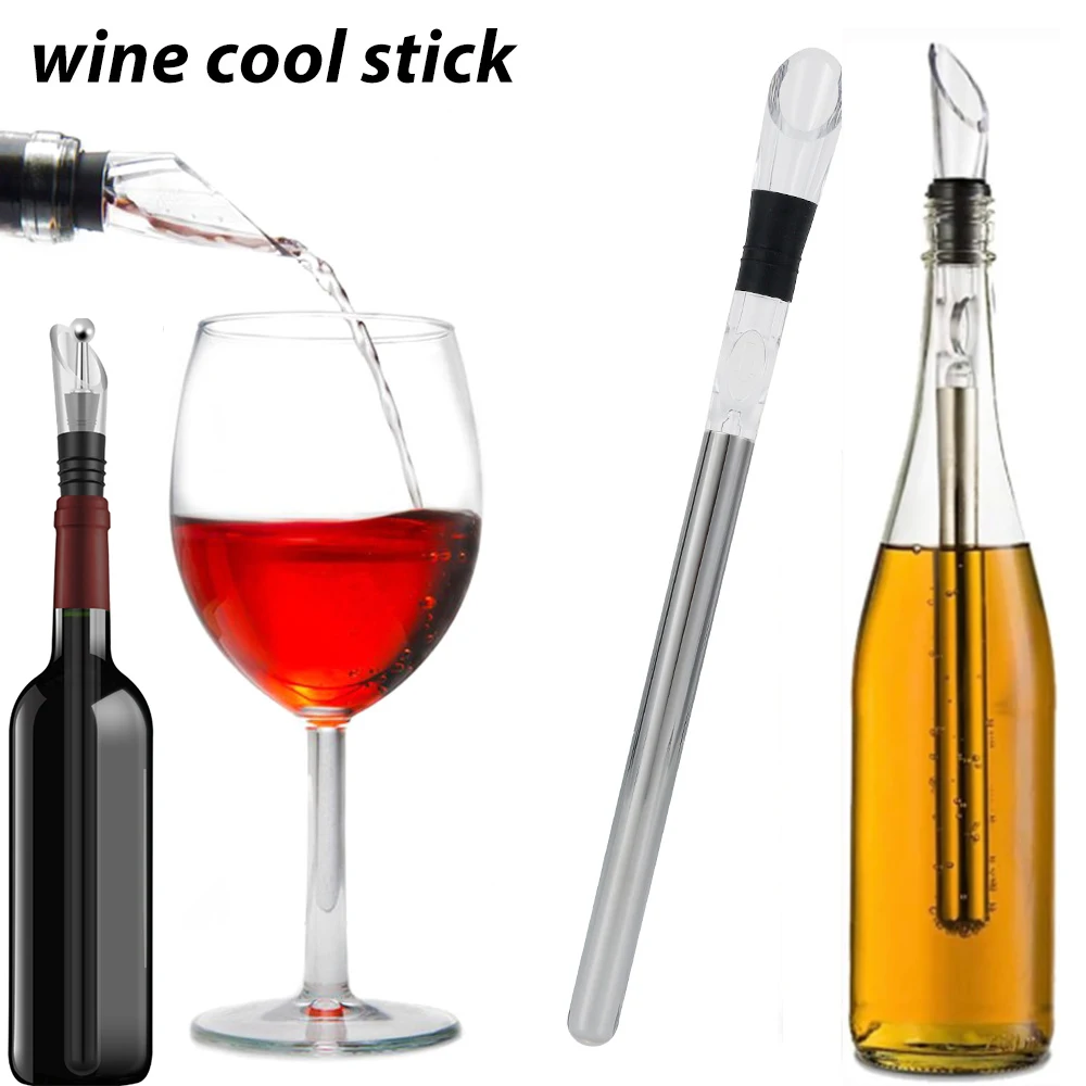 Raffreddatore per vino Aeratore in acciaio inossidabile Tappo versatore Bottiglia di vino Dispositivo di raffreddamento Bastone Rapido Isless Asta di raffreddamento del vino per strumento bar
