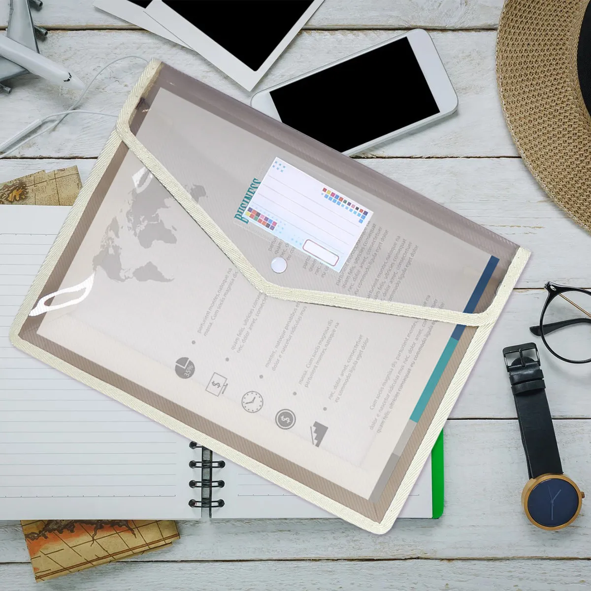 Cartella portadocumenti da 5 pezzi, formato A4, in plastica, con etichette adesive, organizer per documenti di presentazione di grande capacità