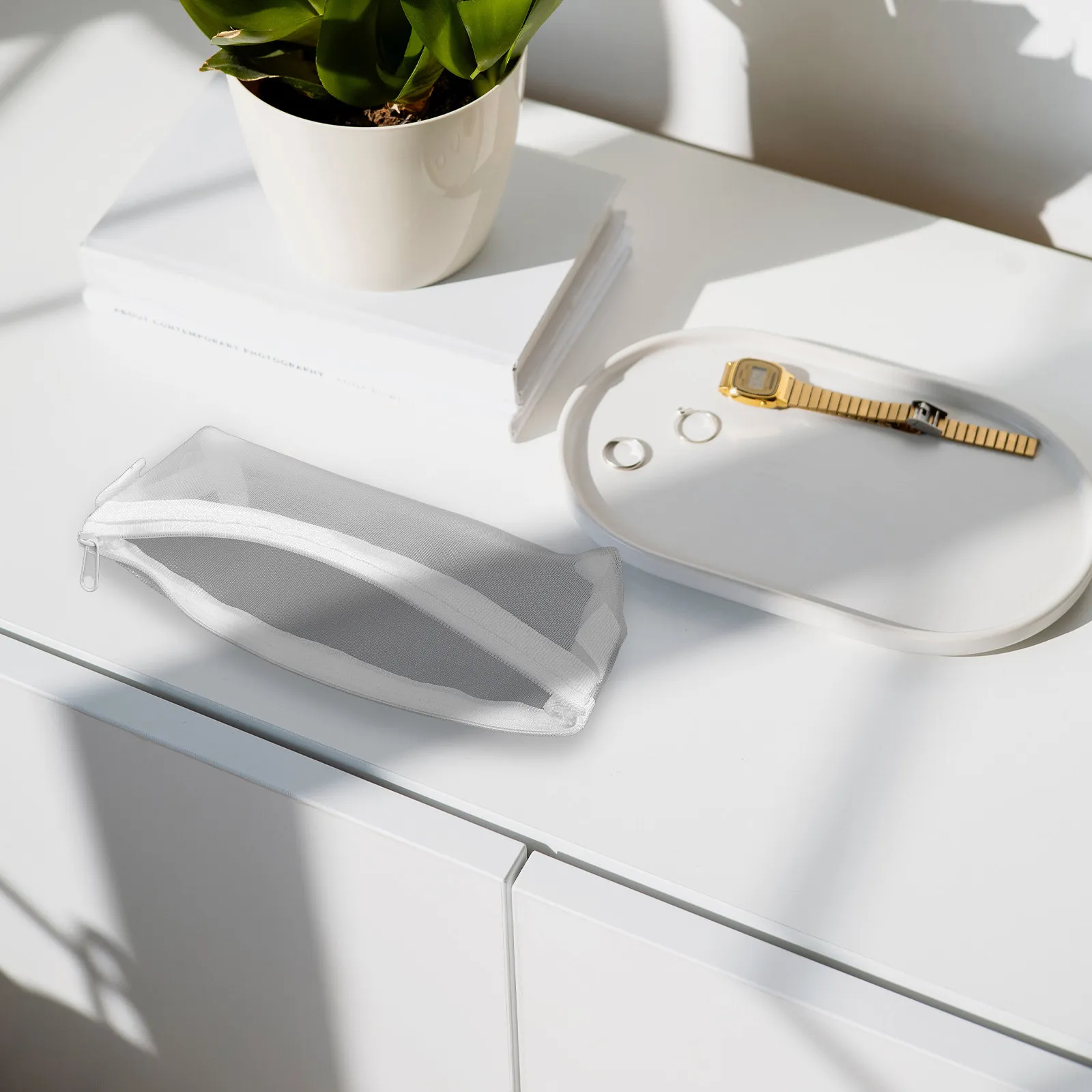 Astuccio Grande Multifunzione con Cerniera, Organizer per Cancelleria, Trucchi e Oggetti da Viaggio, Borsa Trasparente in Rete per Matite