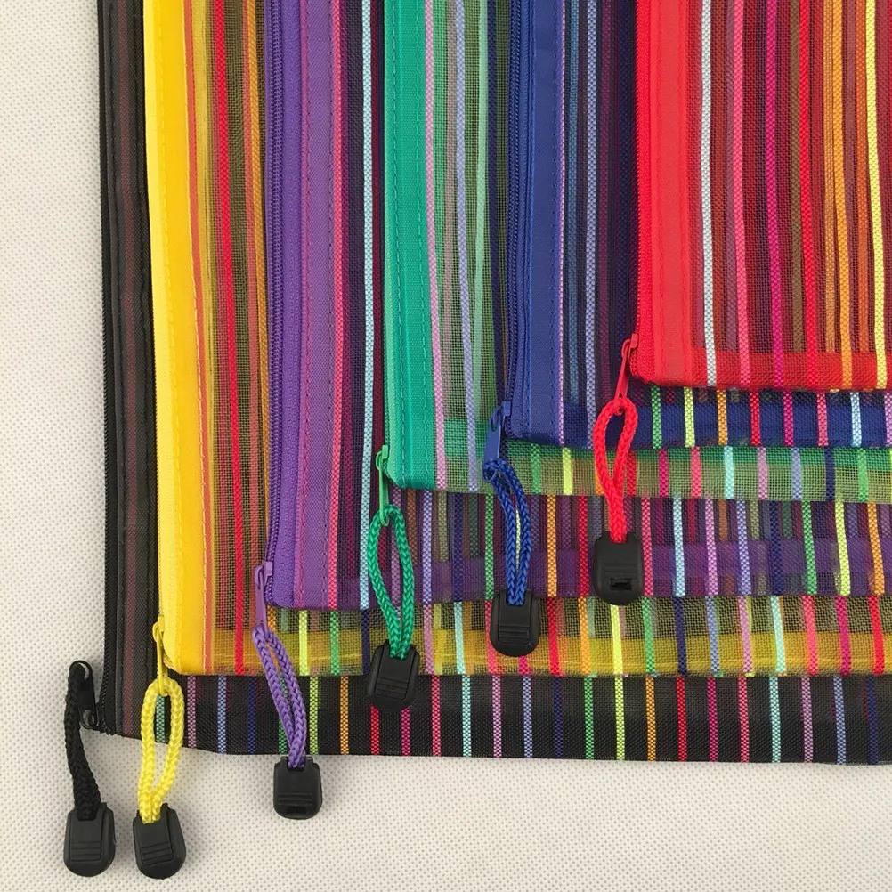 12 Pezzi Borsa Portadocumenti A6 Portatile in Rete di Nylon con Cerniera, Colorata a Righe Incrociate, Impermeabile e Anti-umidità, Piccolo Portadocumenti Organizzatore