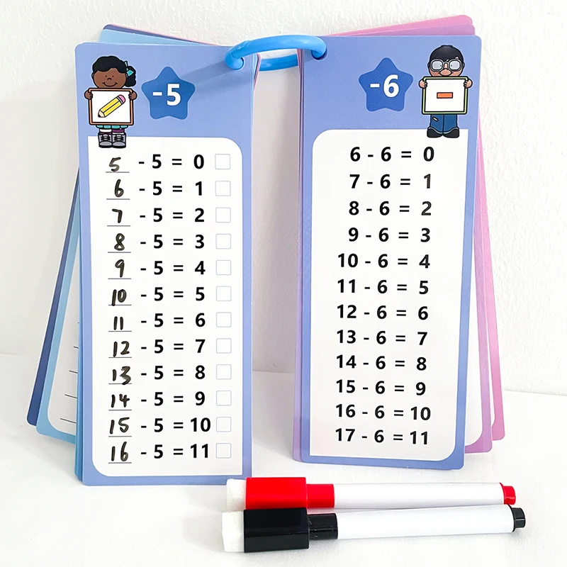 Schede per addestramento matematico 15 pezzi con penna Addizione Sottrazione Moltiplicazione Divisione Apprendimento scolastico Strumenti didattici per la matematica TMZ
