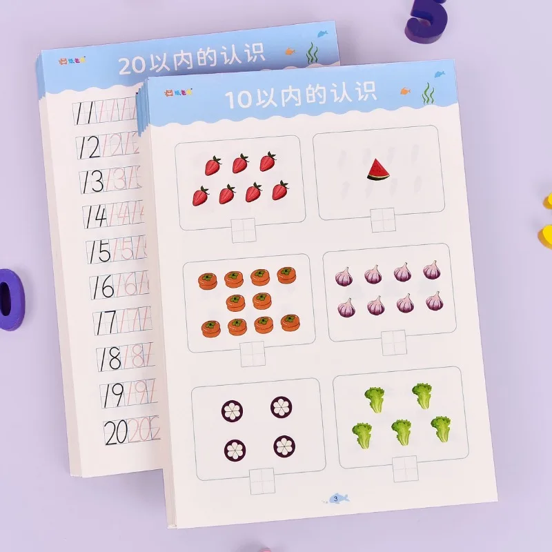 Set di quaderni per l'apprendimento della matematica, scrittura con numeri, pratica di conteggio, addizione e sottrazione entro 20 quaderni di esercizi educativi precoci