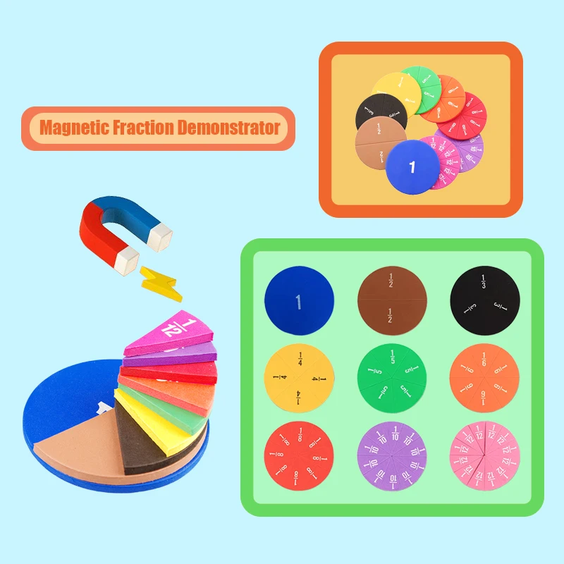 Kit di apprendimento portatile delle frazioni magnetiche Dimostratore di matematica riutilizzabile Aiuto didattico in classe per bambini dai 6 ai 12 anni