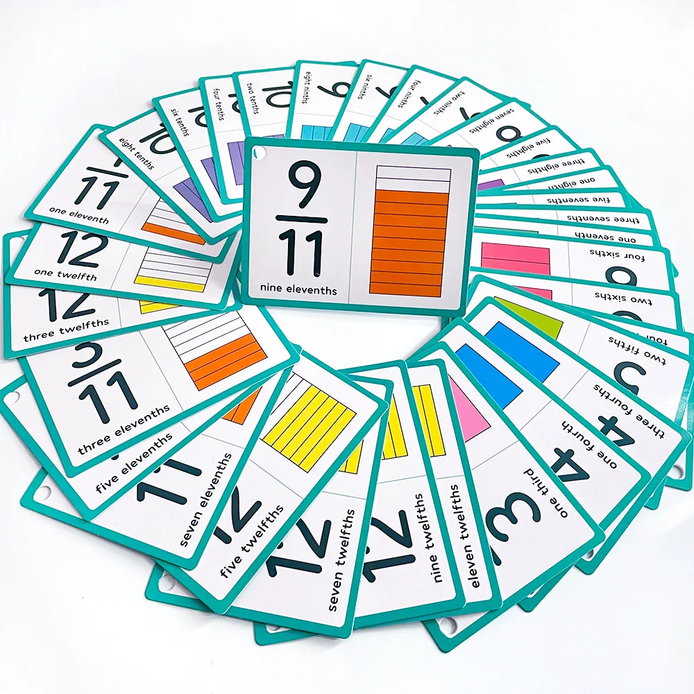 Schede flash per matematica con numero di frazioni Montessori Confronta e semplificare le frazioni per sussidi didattici per la scuola elementare di 2-5 gradi
