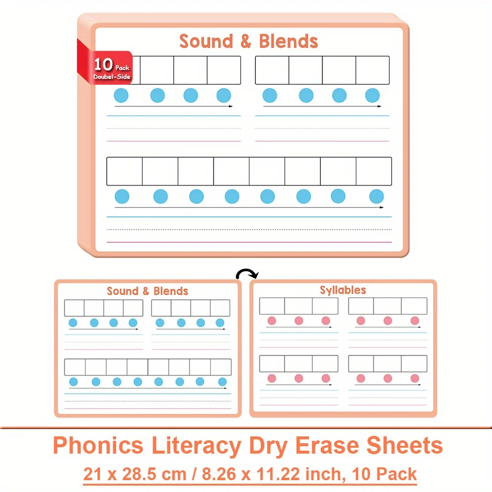 10 pezzi CVC Parole Fonetica Poster inglesi per bambini Miscele cancellabili Sillabe e consapevolezza fonemica Grafico educativo Sussidi didattici