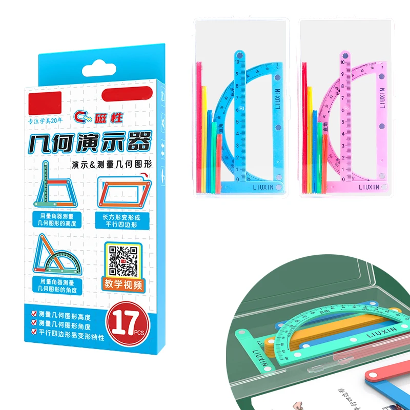 Set di geometrie magnetiche da 12/17 pezzi - Puzzle con forme di goniometro righello, sussidi didattici per la matematica cancellabili a secco per lavagna in classe