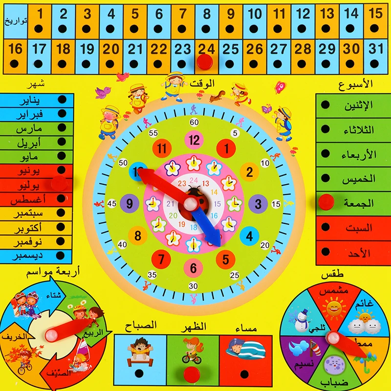 Tavola in legno araba, per imparare sulle condizioni atmosferiche, agenda giornaliera, regalo raffinato