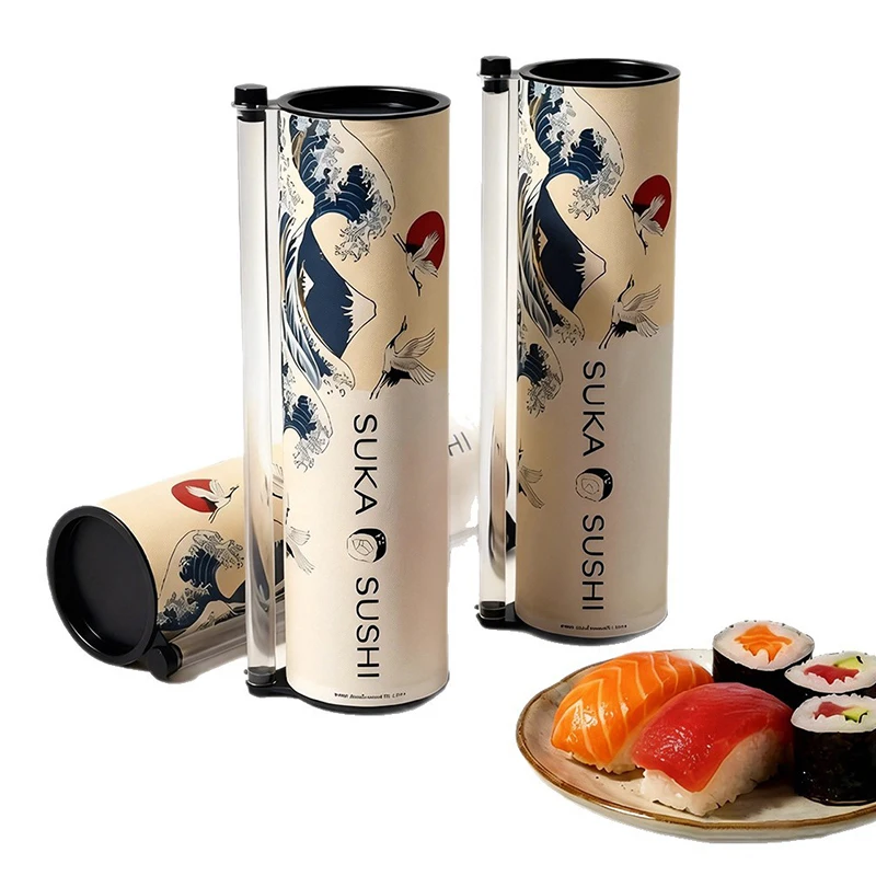 1-10 pz. Scatola Rotonda per Sushi con Salsa e Cannuccia, Stampo per Sushi a Cono in Carta Alimentare, Contenitore a Pressione, Scatola di Carta, Accessorio Bento
