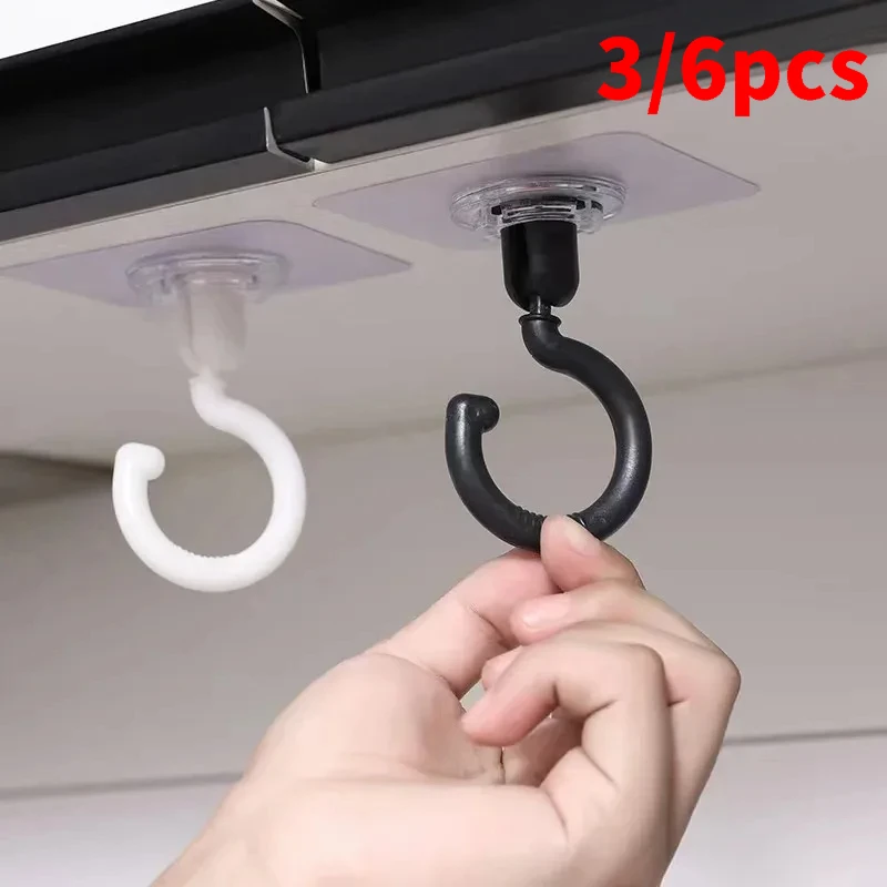 Ganci da parete per soffitto senza perforazione 3/6 pezzi, 360 ° Grucce invertite girevoli per organizer da cucina e bagno