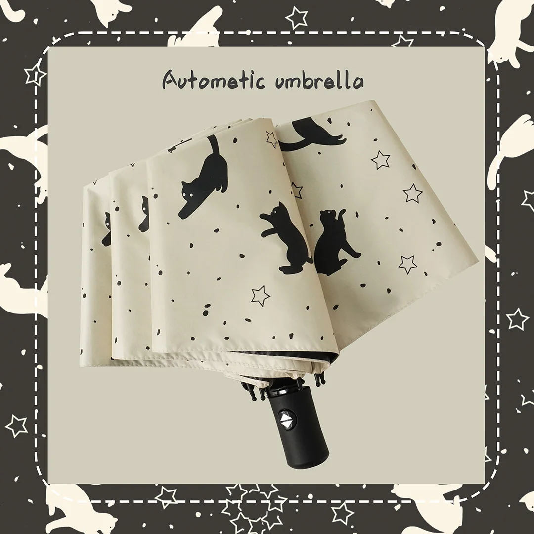 Ombrello per gatti simpatico cartone animato Ombrello estivo essenziale pieghevole triplo con apertura automatica per studenti Sole Rain Doppio uso