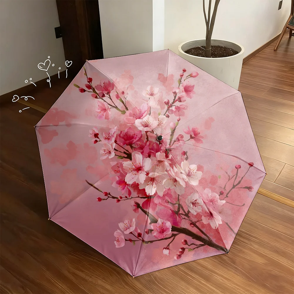 Ombrello con Stampa Floreale di Fiori di Ciliegio - Design Raffinato, Ombrello Pieghevole Leggero e Portatile con Tettuccio Resistente in Materiale Durevole