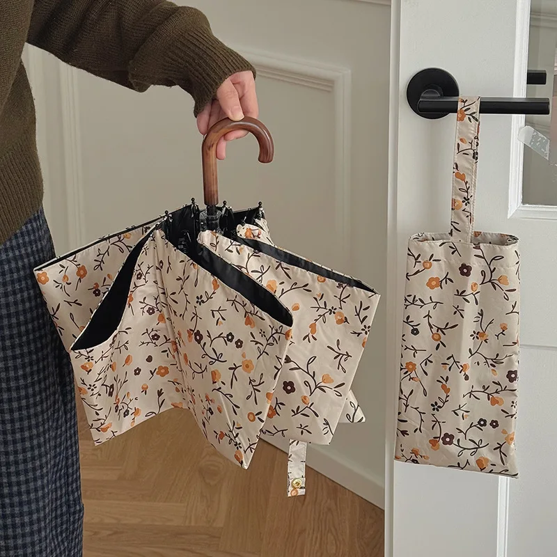 Ombrello Retrò con Fiori Gialli, Carino Ombrello Parasole Completamente Automatico per Donne, Pieghevole e Portatile, con Manico Curvo, Regalo per Ragazze