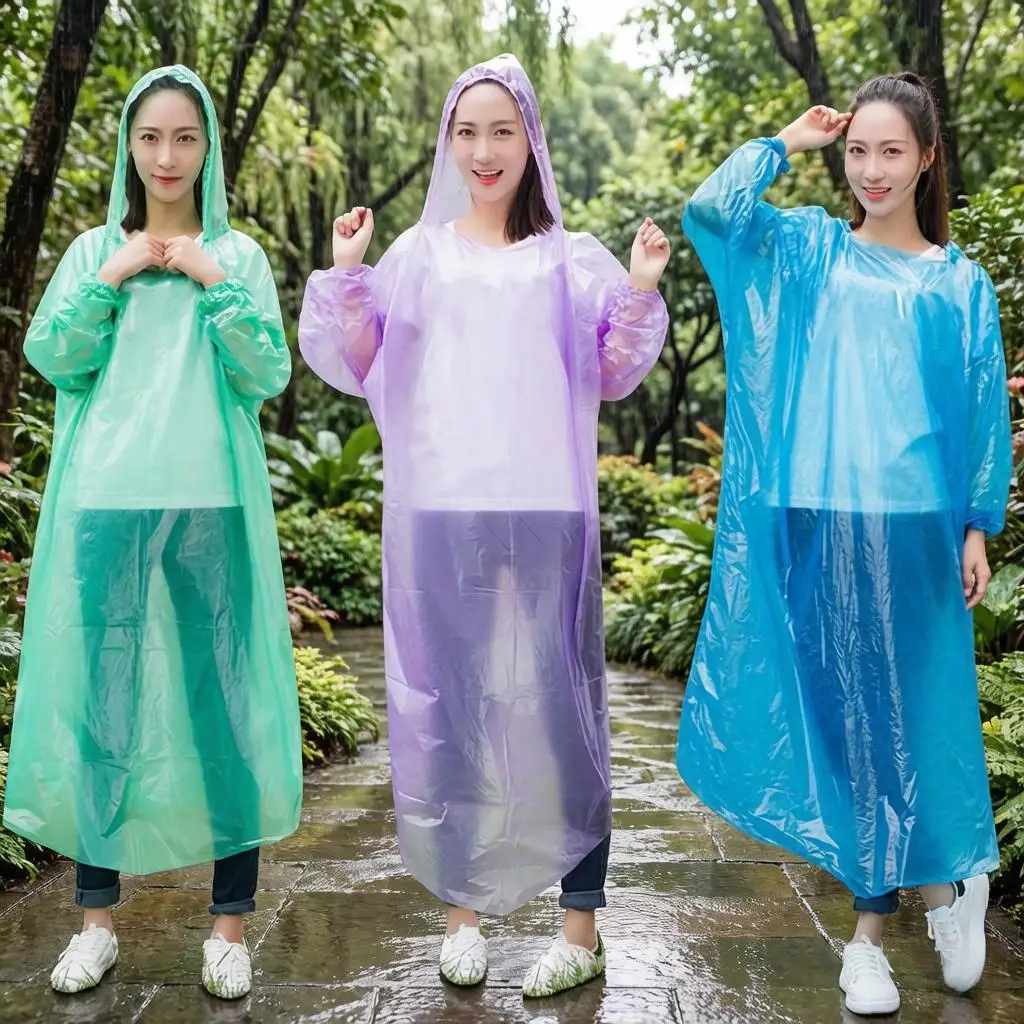Poncho da pioggia impermeabile ispessito per adulti Cappotto PEVA Donna Uomo Impermeabile da campeggio Trasparente con cappuccio trasparente Tuta antipioggia