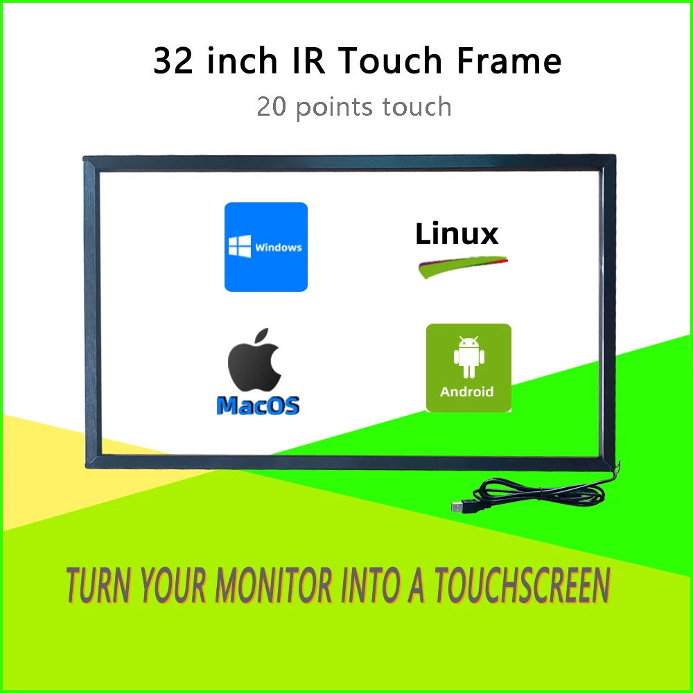Telaio touch IR interattivo da 32 pollici Kit di sovrapposizione touch screen a infrarossi da 20 punti Driver USB gratuito senza vetro