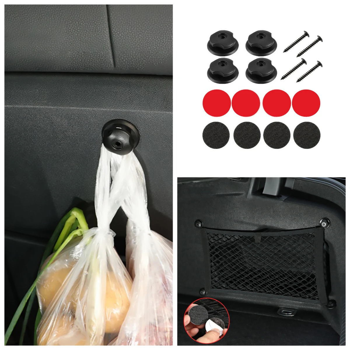 Ganci per bagagliaio per auto Organizzatore Indietro Cargo Montaggio Rete per bagagli Fissaggio Gancio di fissaggio per auto modificato con kit nastro adesivo a vite