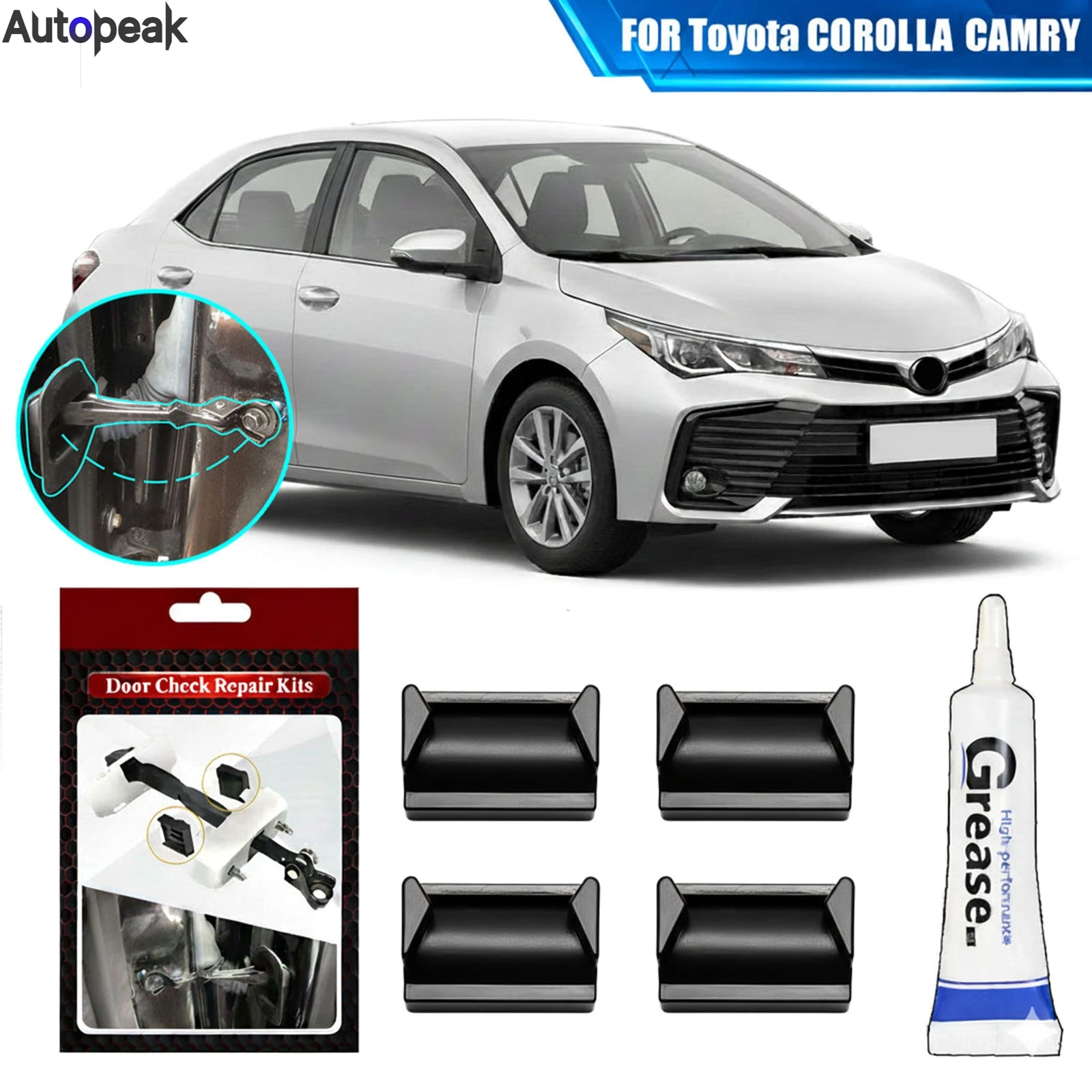 4 pezzi porta auto cinghia di controllo controllo assy limitatore kit di riparazione tappo smorzamento per Toyota Camry Corolla Avensis Auris porta cadente