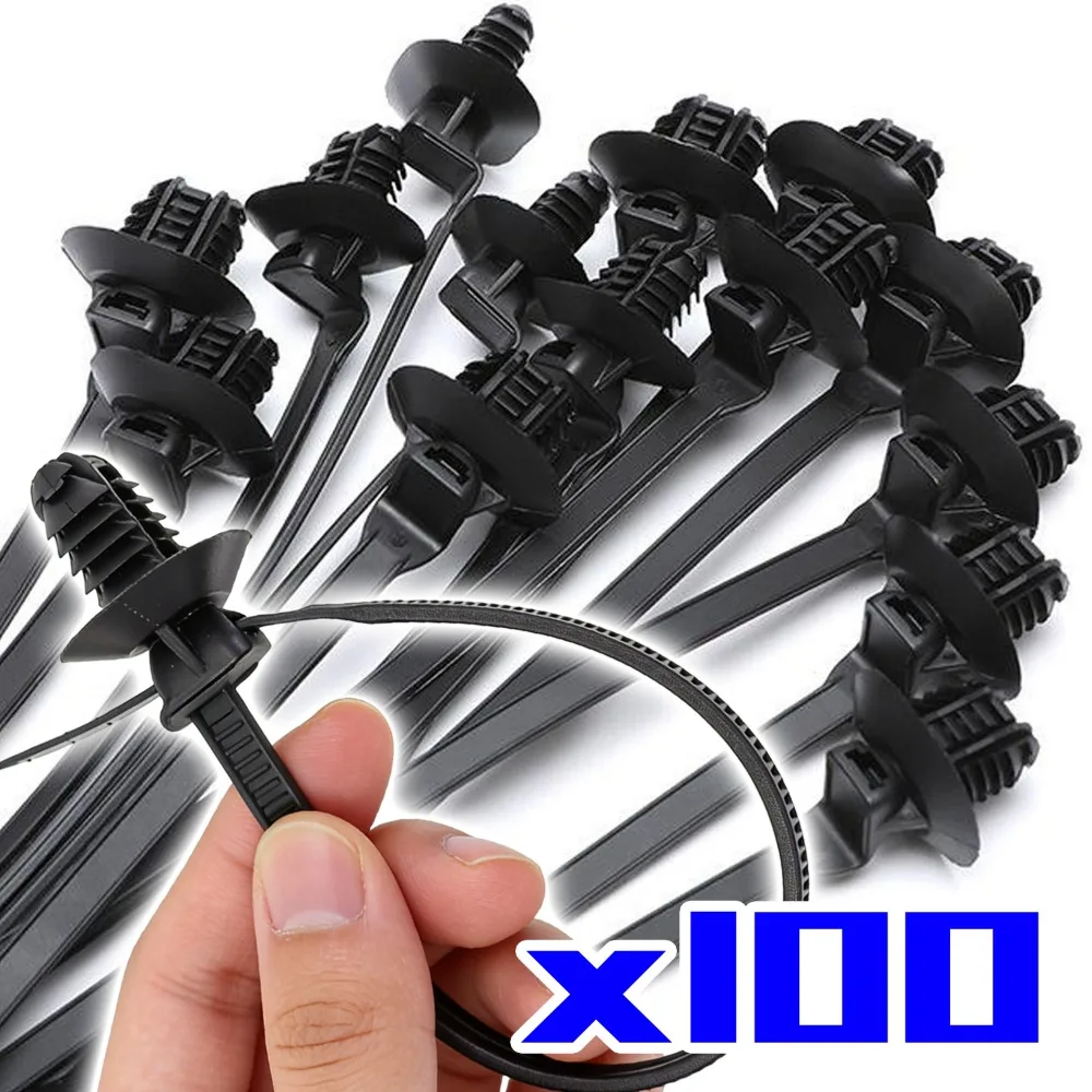 Fascette stringicavo per cablaggi automobilistici, tipo a spinta a forma di albero, in nylon PA66, con foro ovale Φ12x7mm, clip di fissaggio per pannelli