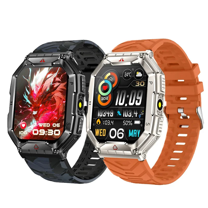 Nuovo orologio intelligente militare da uomo torcia bussola impermeabile 600mAh batteria sport all'aria aperta tracker chiamata Bluetooth Smartwatch