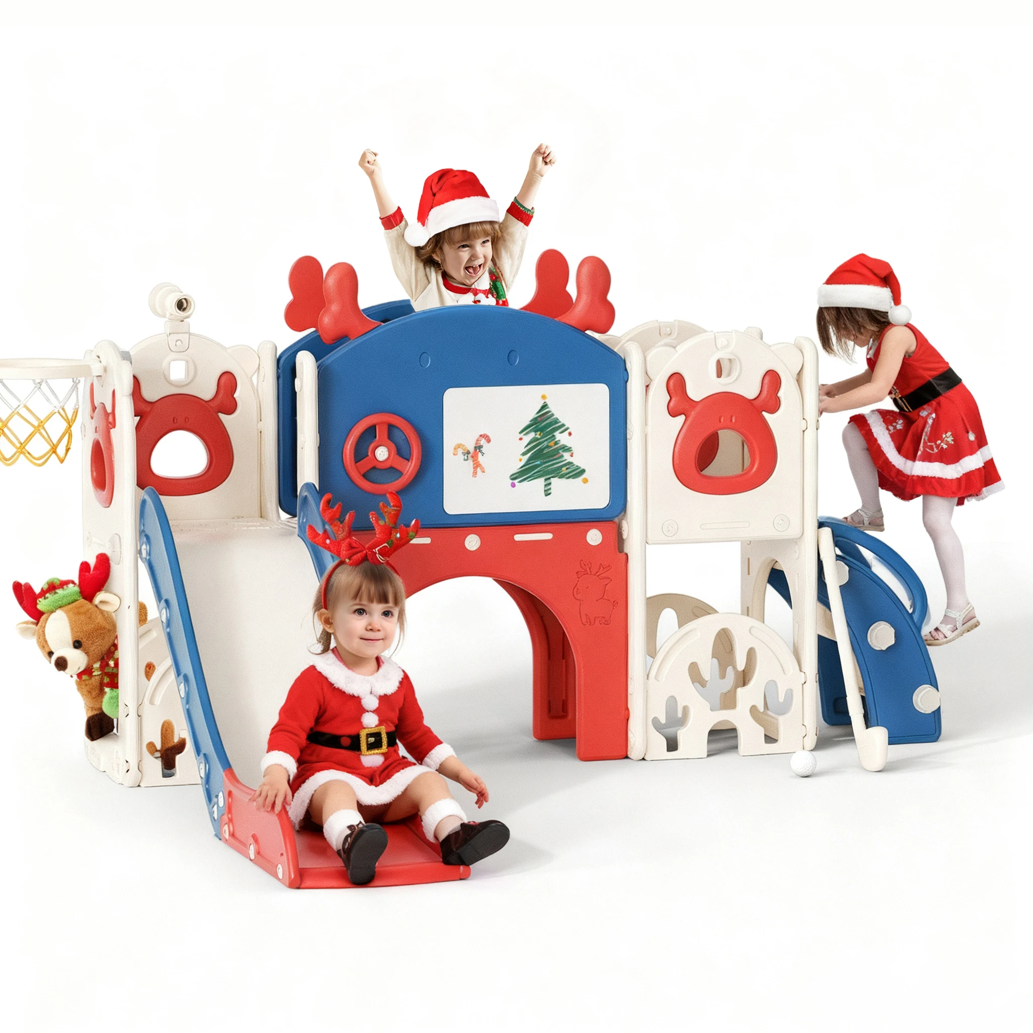 Scivolo per bambini 11 in 1 con scala da arrampicata, cestino da basket, set di diapositive in plastica per bambini, giochi per parco giochi Montessori, regalo di Natale