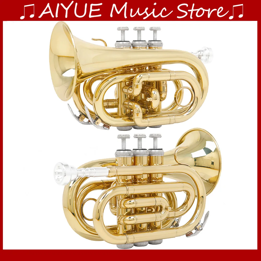 Shuffle Tromba Corno di palma Bb Tune Corpo in ottone Mini cornetta tascabile Strumenti in ottone con custodia Guanto Bocchino Accessori