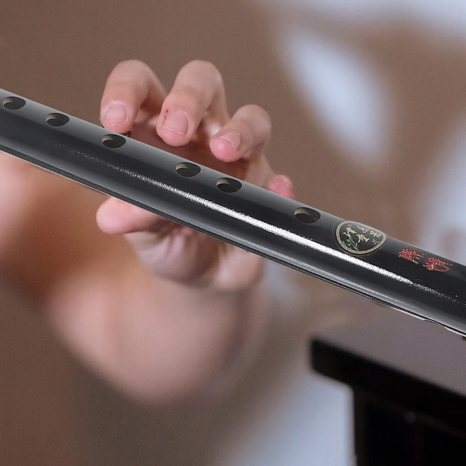 Flauto di bambù per principianti, nero, strumento musicale tradizionale cinese, fori per il tono precisi, superficie liscia e lucida, decorazione con nappine