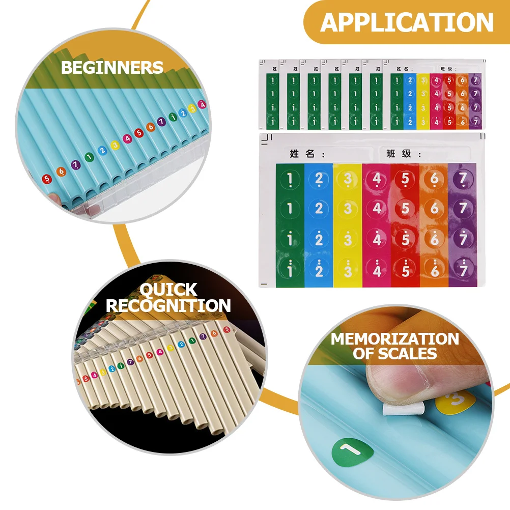 Set di 8 adesivi per note per flauto Pan, perfetti per i nuovi giocatori, facile pasta, rimozione pulita, accessori per l'addestramento musicale