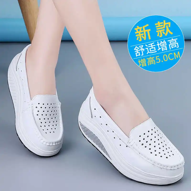 Morbida aumenta l'altezza Sneakers bianche Scarpe traspiranti Zoccoli Piattaforma Tennis Creepers estivi Infermiera Scarpe estive interne maggiorate