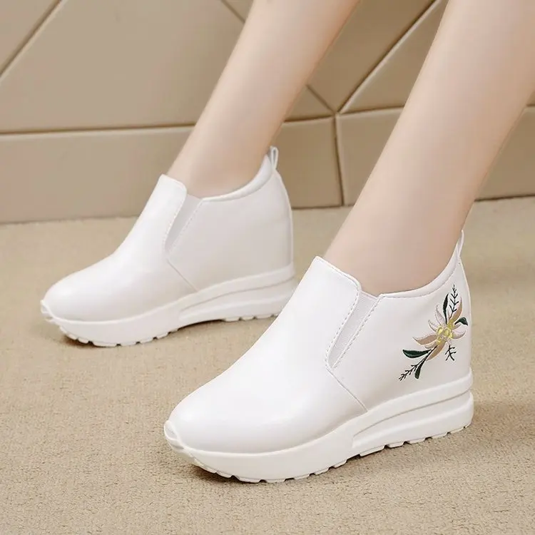 Scarpe da donna casual Zoccoli Piattaforma Tennis Appartamenti femminili Sneakers in vera pelle Aumenta l'altezza Creepers Abito traspirante Estate Mo