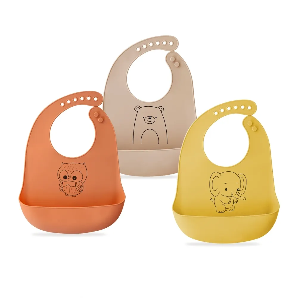 Bavaglini in silicone per animali carini dei cartoni animati Bavaglino in silicone per neonati che alimenta stoviglie morbide in tessuto per ruttini
