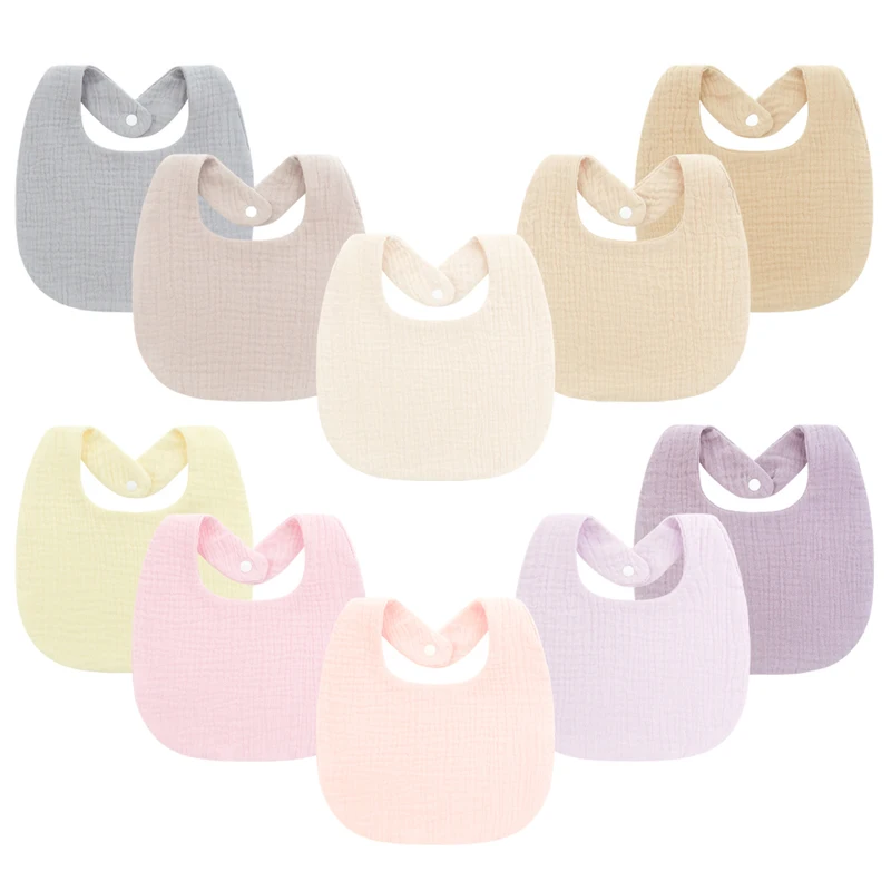 6 pezzi di bavaglini in garza di cotone con bordo a foglia di loto, bavaglini per neonati a tinta unita con bottoni a pressione, morbidi e confortevoli, per la pappa e la protezione dalla saliva.