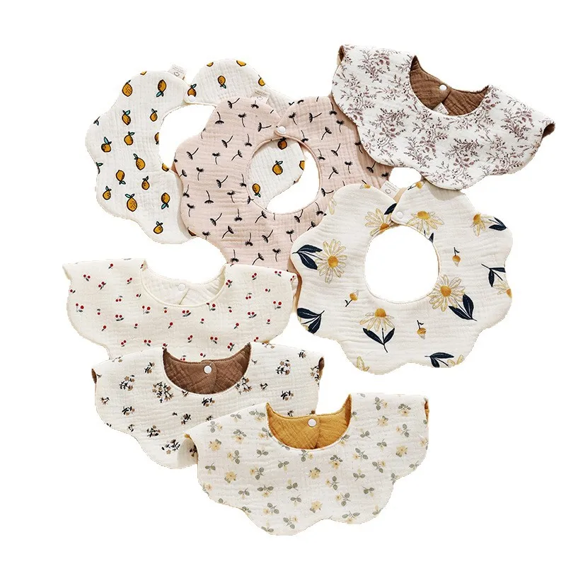 Bavaglino impermeabile con design a petalo, 100 per cento cotone, morbido e assorbente, bandana per neonati, che allatta e gioca, età 0-3 anni