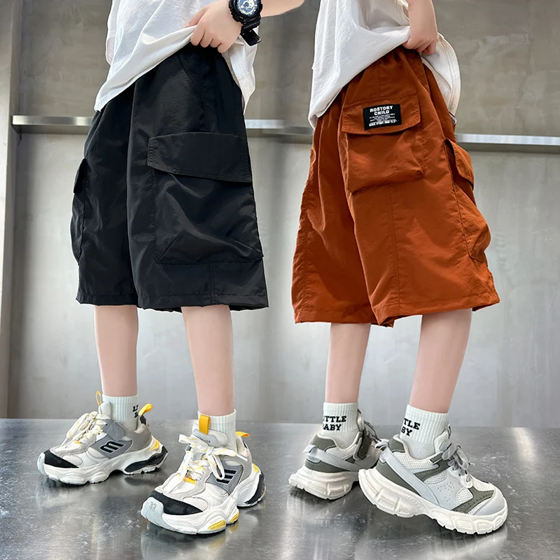 Pantaloni a cinque punti in cotone per bambini per bambini, vita elastica, pantaloni corti da spiaggia per bambini, abbigliamento sportivo casual estivo in tinta unita